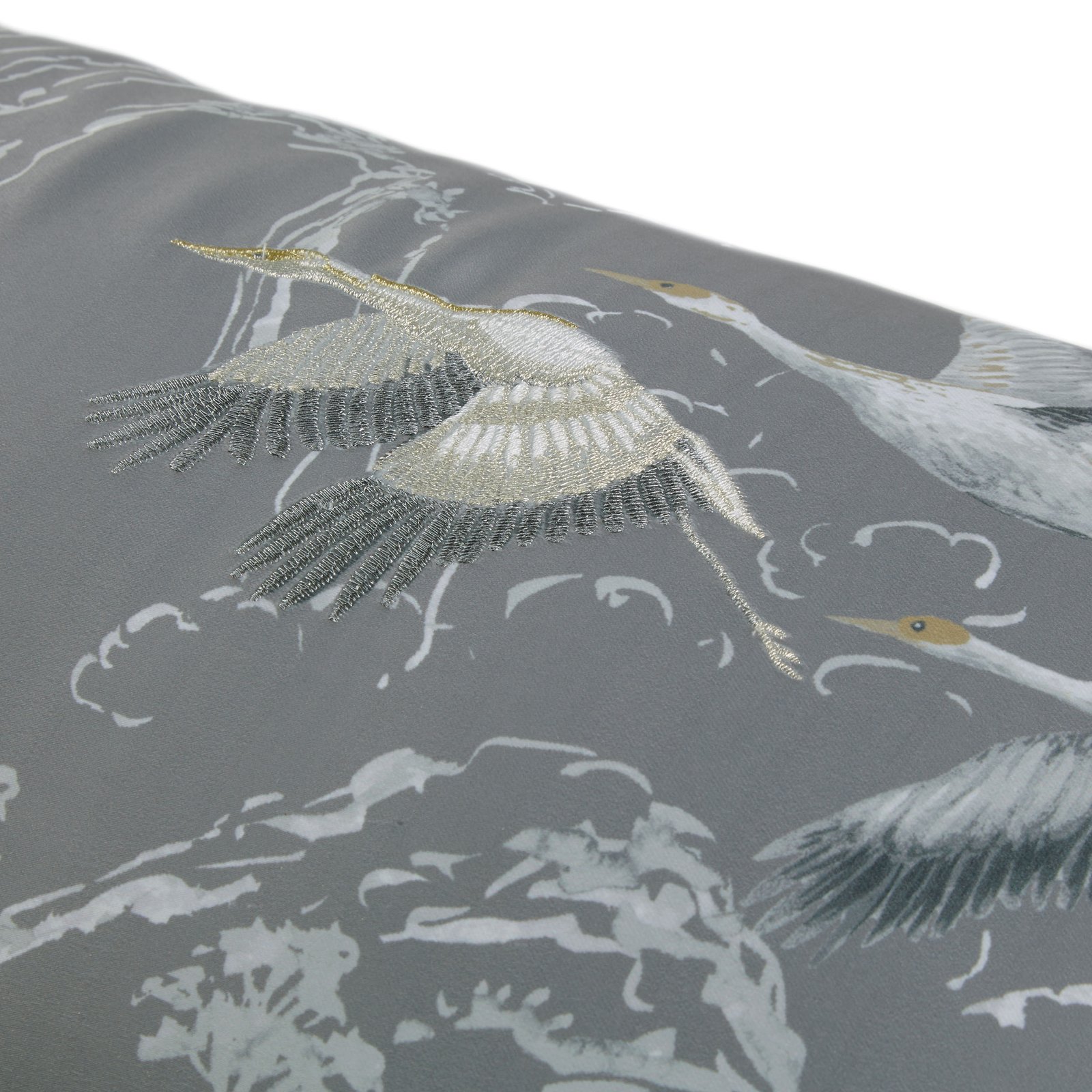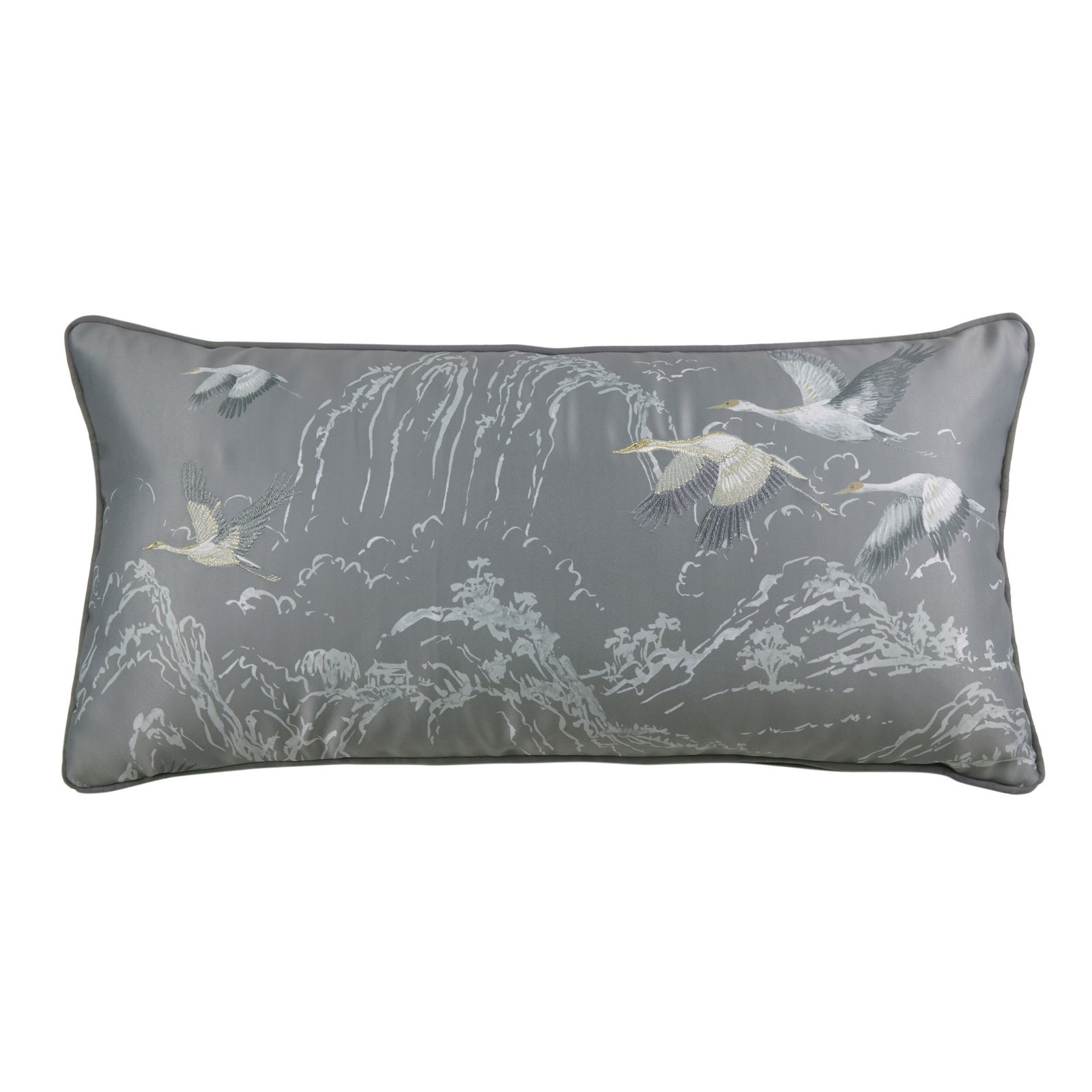 The elegant shapes, inspired by Japan, give your home a modern, luxurious feel. The flying cranes are magnificently presented on a satin base of this steel-colored pillow. And with the included plush filling, this pillow instantly gives a comfortable chic to your favorite interior spaces.