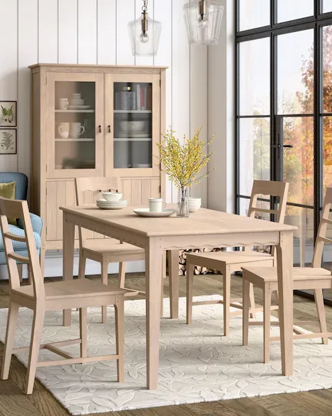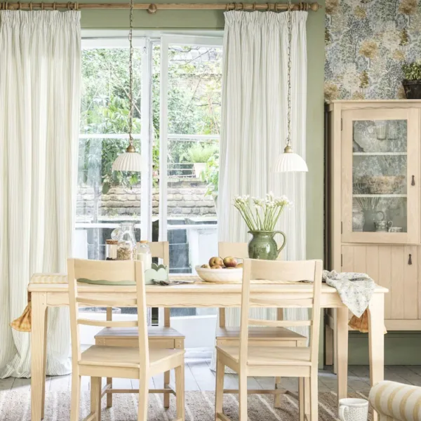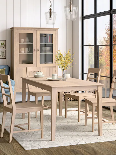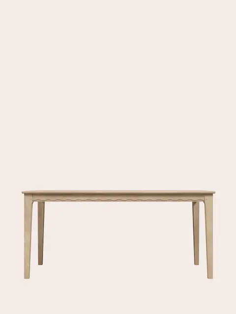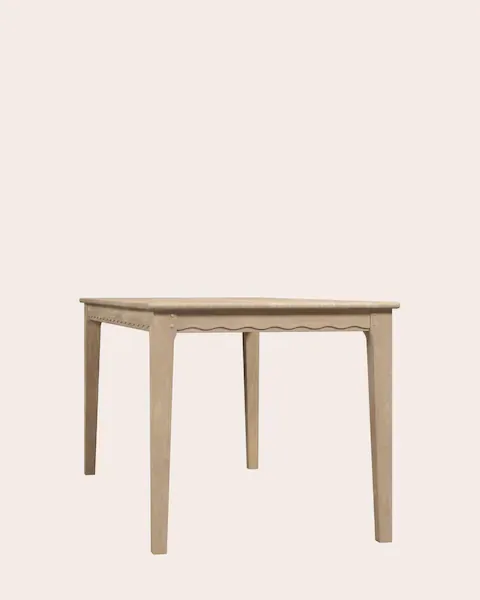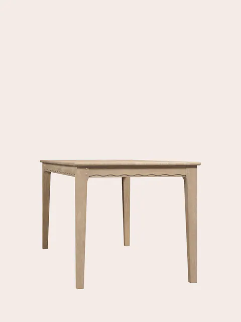 The Calford Dining Table exudes charm and makes a perfect addition to your home. Inspired by Shaker style, this beautiful table features scallop edge detailing and is crafted from natural oak with a white-washed finish. Comfortably seating 4-6 people, this piece is easy to assemble, requiring only the attachment of the legs.