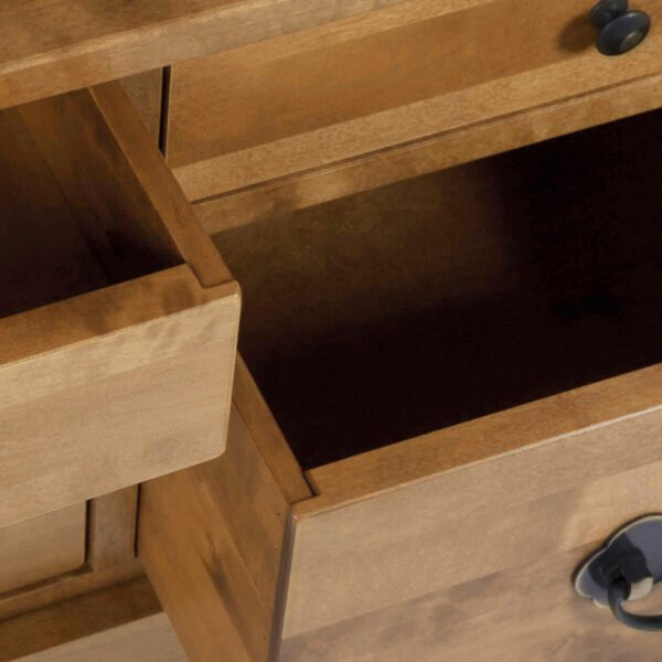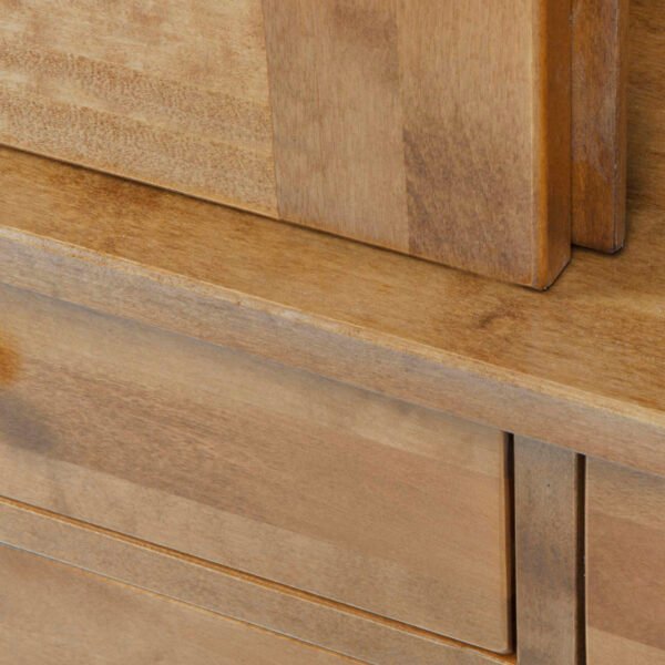 Crafted from predominantly solid birch but with some birch veneer modern materials the Laura Ashley Garrat 2 Door 4 Drawer Display Unit cleverly combines the options of storage and display. It benefits from a pair of panel glass doors behind which can be found three adjustable shelves. Beneath the display section there are four drawers; two deep and two small which offer ample storage. The display unit is stained to enhance the natural wood effects is completed with brass effect handles and knobs for an authentic look. Only the top half needs to be positioned and attached to the base to begin enjoying this piece; full assembly is not required.