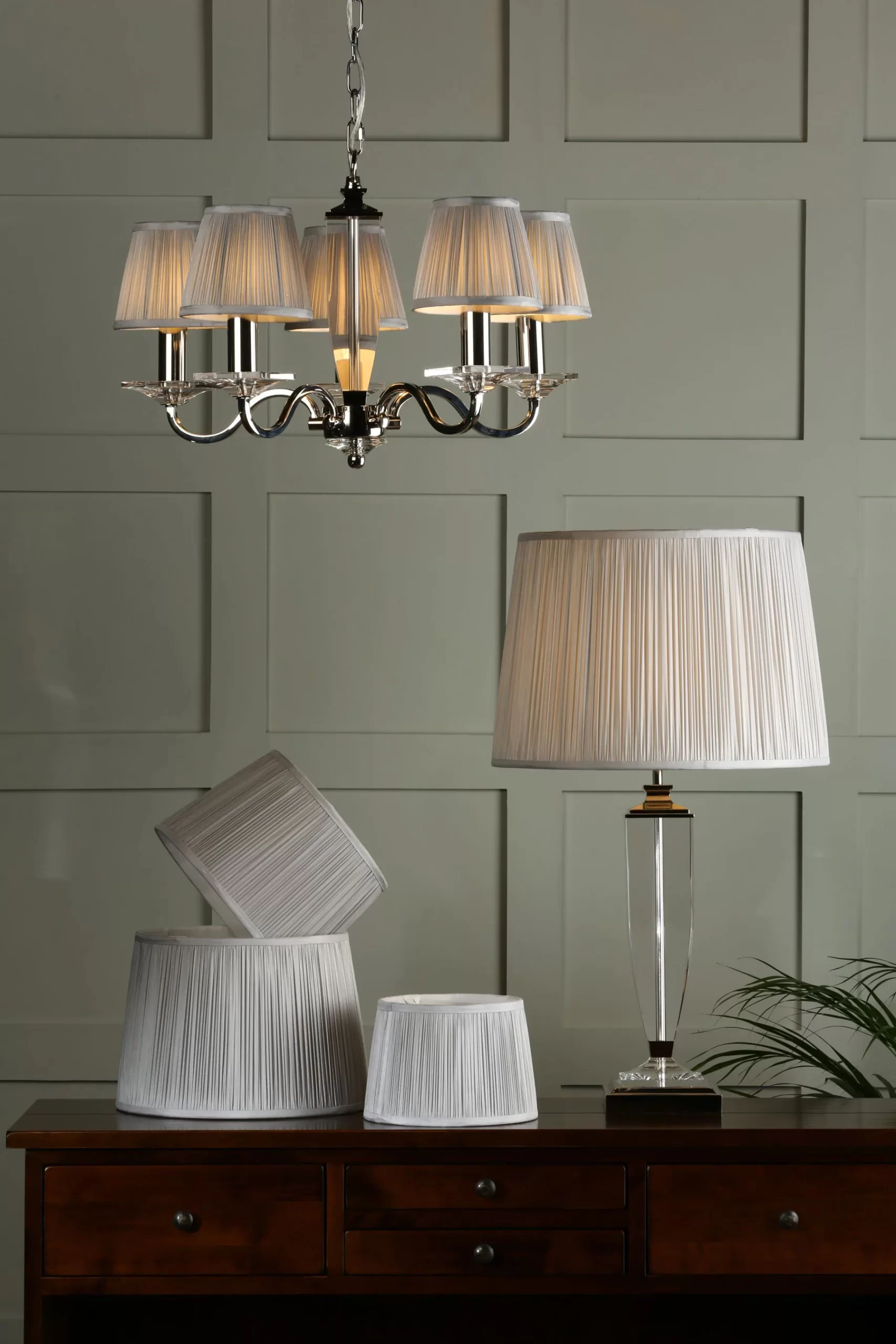 The handmade Laura Ashley Hemsley lightshade has a classic, slightly angled, Empire drum form. Here we finish it in an elegant, pleated smooth silk in silver. Fabric shade only; fitting not included. 60W max. Suitable for E27 fittings. Comes with a reducer ring to fit traditional B22 fittings. Finished with a white lining.12 Inch