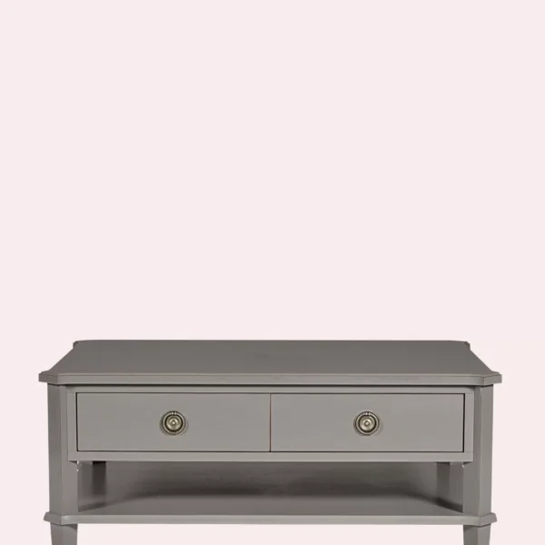 Suiting any decor The Laura Ashley Henshaw 2 Drawer Coffee Table is a practical yet stylish piece. It is crafted from solid wood with some modern materials and is hand painted and finished with a clear lacquer making it low maintenance. The coffee table benefits from two good-sized drawers and a fixed lower shelf. And thanks to subtle distressing on its edges the coffee table displays a gently aged effect so completing its appeal. Only the legs need to be attached to begin enjoying this piece; full assembly is not required.