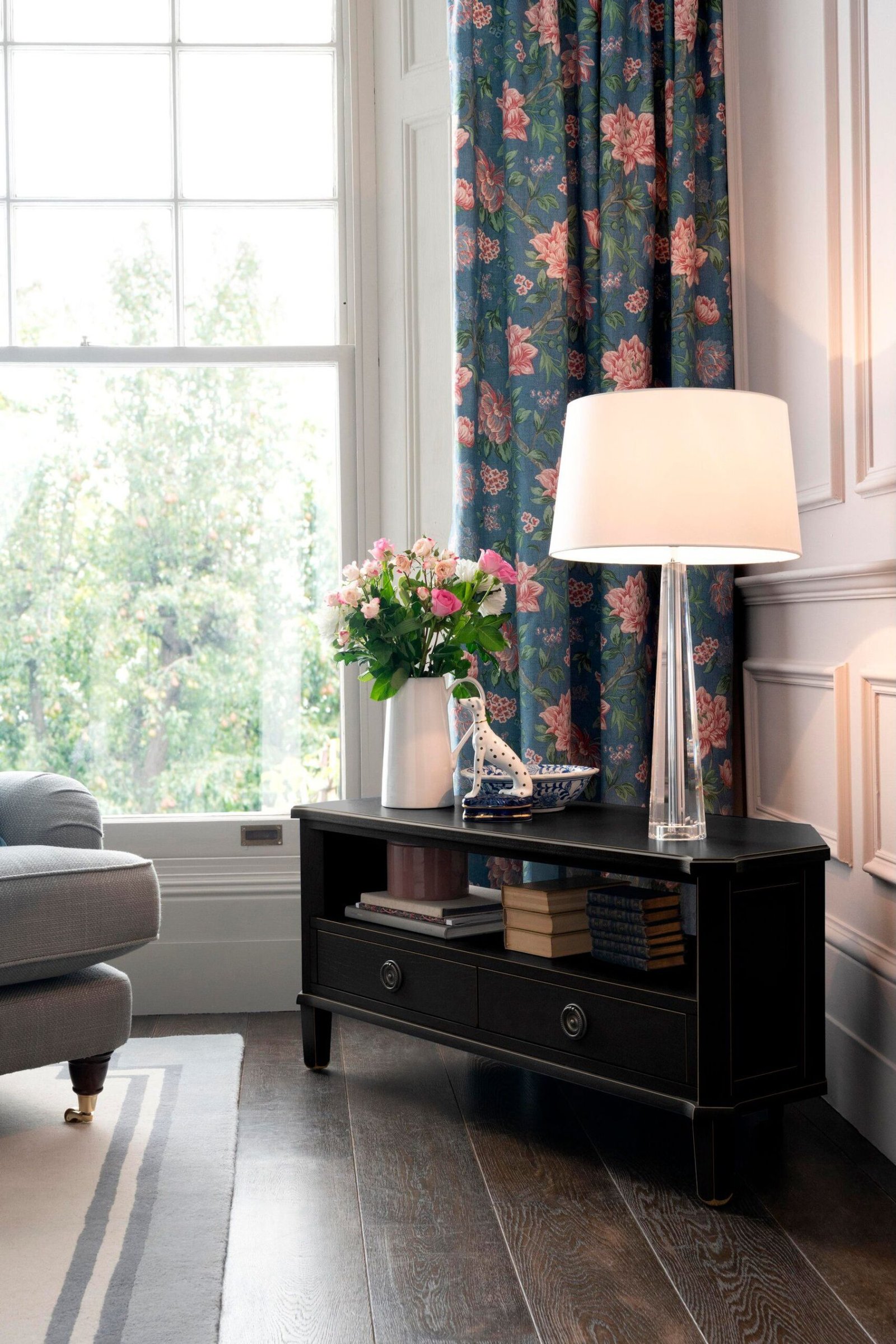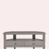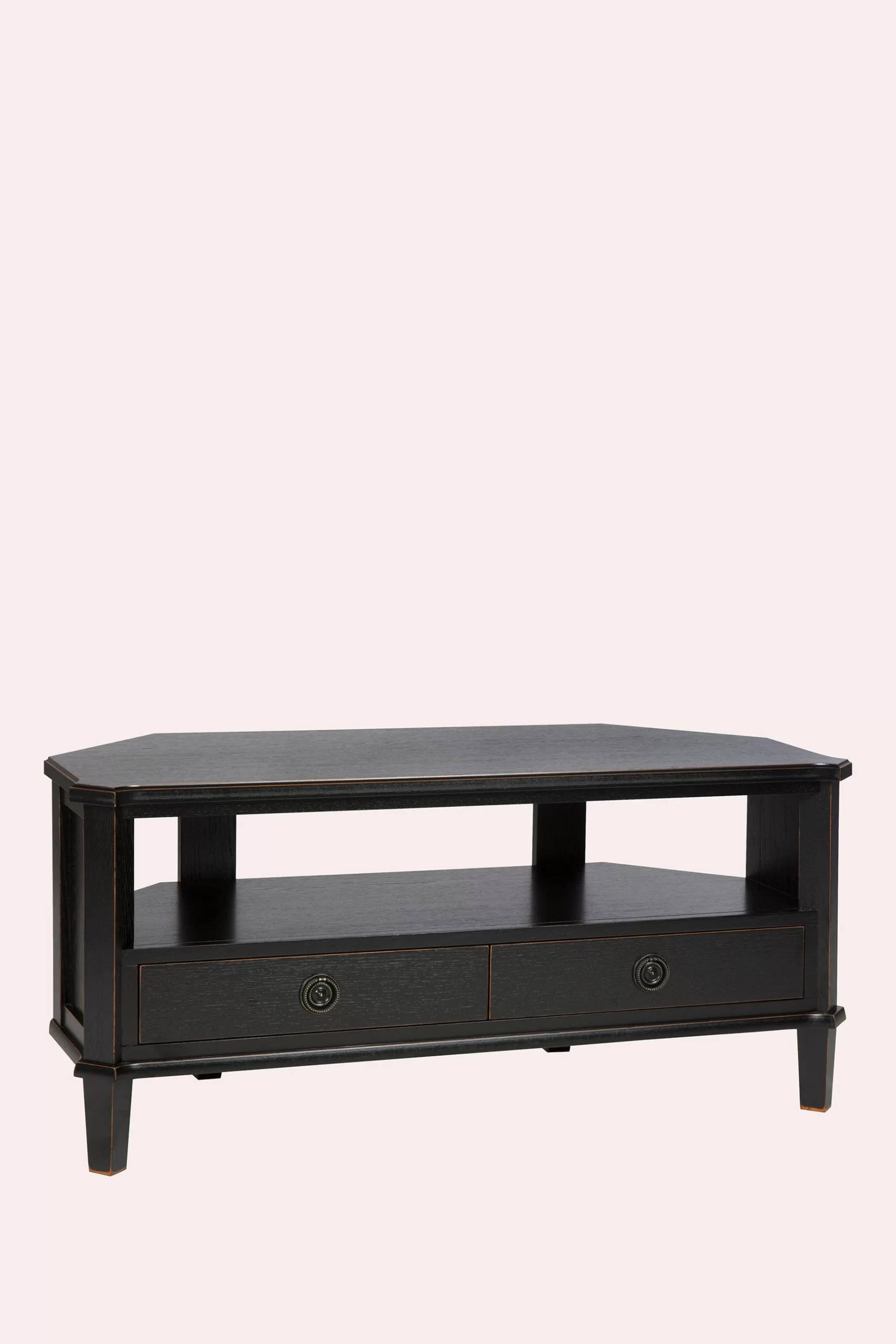 Crafted from predominantly solid wood but with some veneered elements the Laura Ashley Henshaw 2 Drawer Corner TV Unit works perfectly in any sitting room. It benefits from two good-sized drawers as well as an open back to the media shelved section above allowing for the easy management of cables. it is hand painted and finished with a clear lacquer making for low maintenance. Thanks to subtle distressing on its edges the unit displays a gently aged effect so completing its appeal. Only the legs need to be attached to begin enjoying this piece; full assembly is not required.