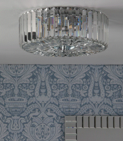 The glamorous Fernhurst ceiling light by Laura Ashley features bevelled glass rods, all suspended from a circular frame in bright polished chrome. Full flush fittings attach directly to the ceiling so are suitable for low ceilings and small rooms, plus they have a neat finish with no visible cables. Bulbs not included; takes 3 x 33W Max G9.
