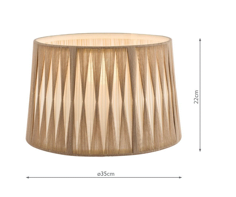 Featuring pretty gathered pleats, this classic lightshade from Laura Ashley has a classic, slightly angled, Empire drum form. The diameter of this size is 35cm. Here we finish it in a smooth cotton pleats. The outer pleats – in natural – are pinched together in sections with beige thread, revealing the lighter natural, softly pleated lining beneath.