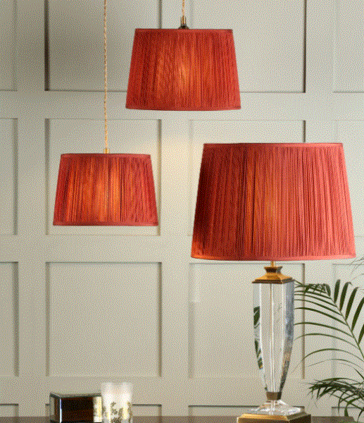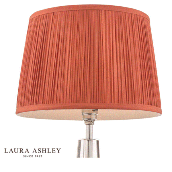 The Laura Ashley Hemsley lightshade has a classic Empire tapered drum form in an elegant, pleated smooth silk. Fabric shade only; fitting not included. Suitable for E27 fittings; comes with a reducer ring to fit traditional B22 fittings.