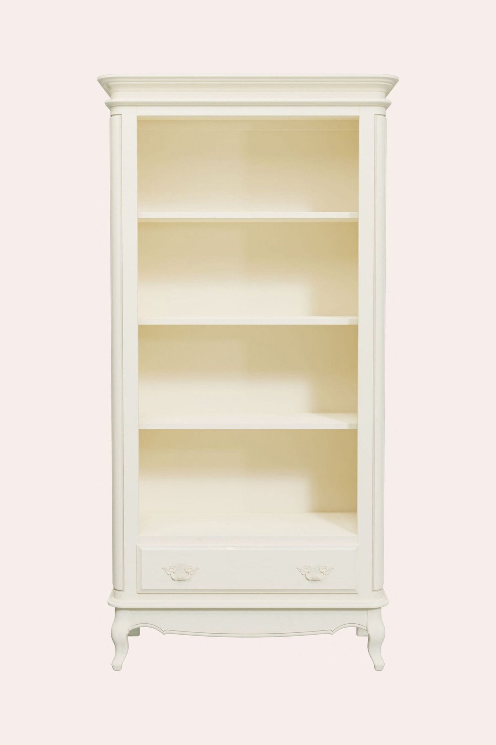 A stunning focal point of any living or dining space, the Laura Ashley Provencale 1 Drawer Bookcase marries practicality and elegance. One fixed and two adjustable shelves are housed within the panelled body and a full width drawer is dressed with authentic florid handles particular to the style. The typical curved corners of the piece are further complemented by its tall and ornate cornice.