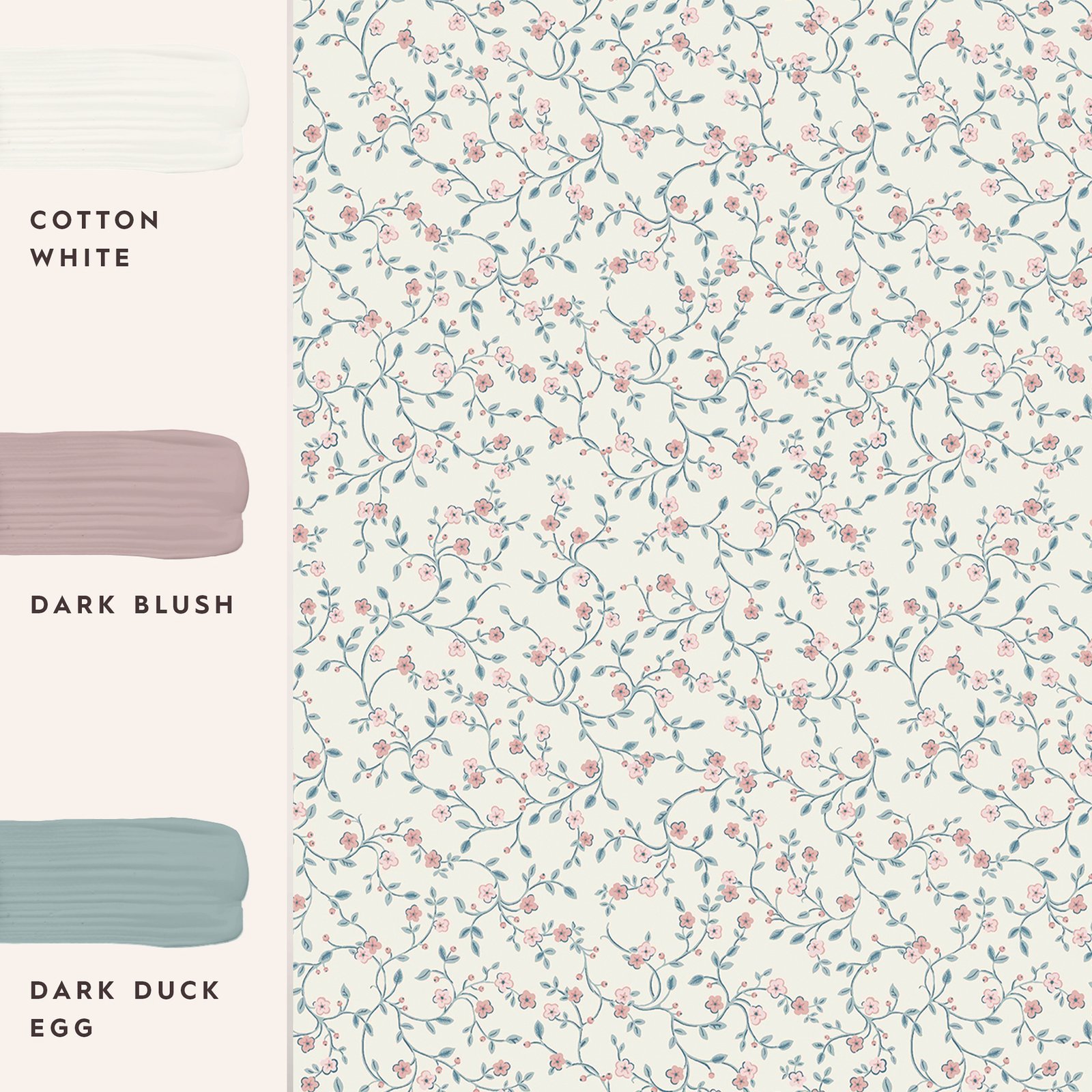 Officially introduced in 1990, this charming print is inspired by an original drawing by Laura Ashley. Belnkow branches feature a beautiful climbing design with carnations and berries. Use to redecorate an entire room or for a color accent on selected walls. All Laura Ashley wallpapers are made in the UK. Easy-to-apply wallpaper, apply the adhesive to the wall, then place the wallpaper directly on the wall. We recommend using Laura Ashley Wallpaper Adhesive for best results.