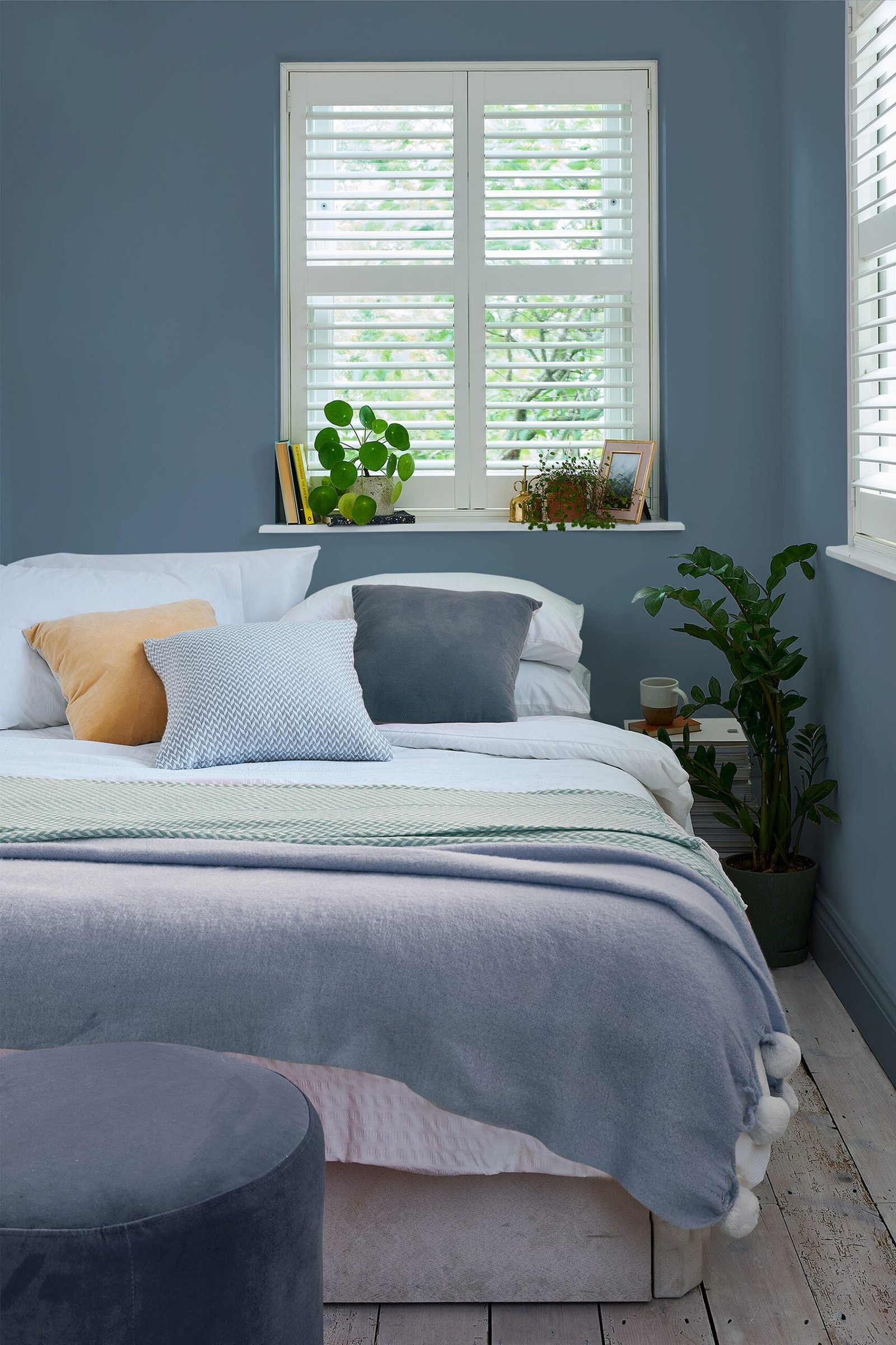 A fresh, marine tone of blue. It will refresh your interior and bring you lots of sunny mood and energy. It is perfectly combined with wallpapers of this tone, as well as with all decorative elements in the same color, emphasizing and complementing them. It has a soft matte finish and is suitable for interiors only. Made in the United Kingdom.