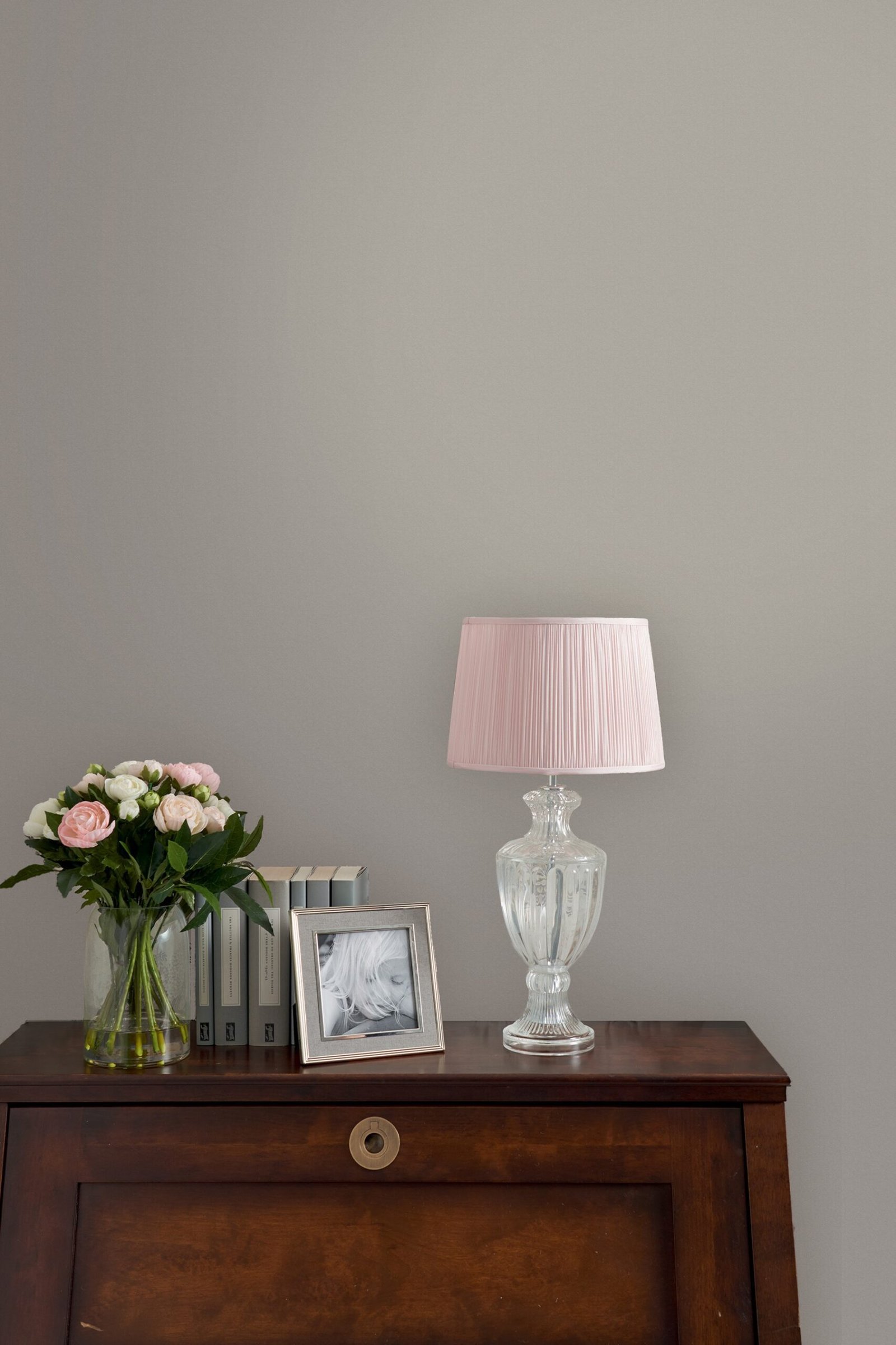 Light tone of fresco gray color. It will bring an additional sense of style and glamor to your interior. It is perfectly combined with wallpapers of this tone, as well as with all decorative elements in the same color, emphasizing and complementing them. It has a soft matte finish and is suitable for interiors only. Made in the United Kingdom.